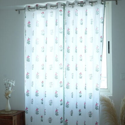 Luxury Green Floral White Cotton Designer Curtains in just 2,399